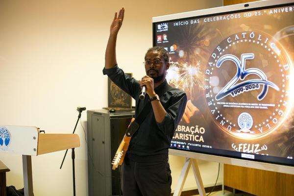 A sessão contou com a valiosa colaboração do Prof. Benjamim M’Bakassy, que assumiu a complexa missão de realizar a tradução simultânea inglês–português–inglês.
